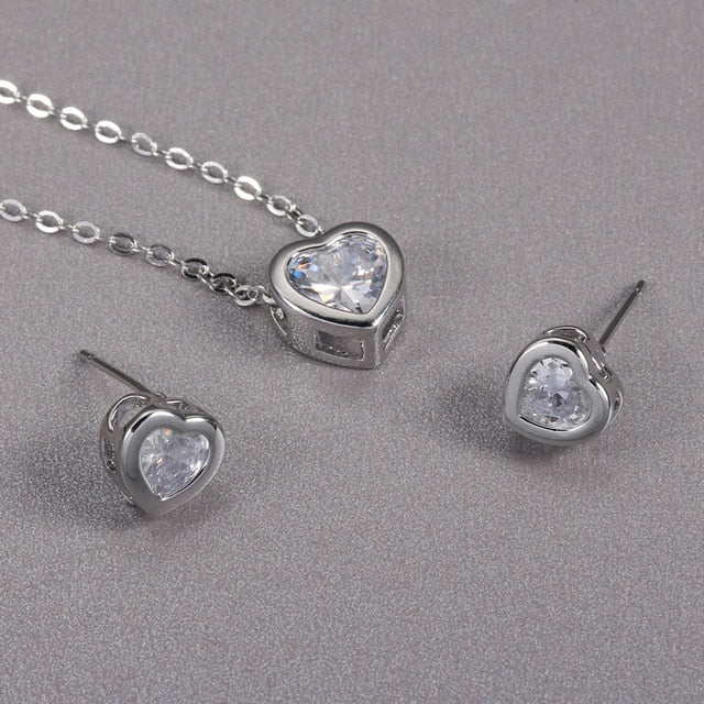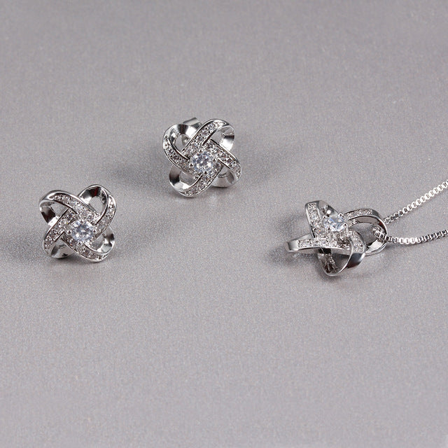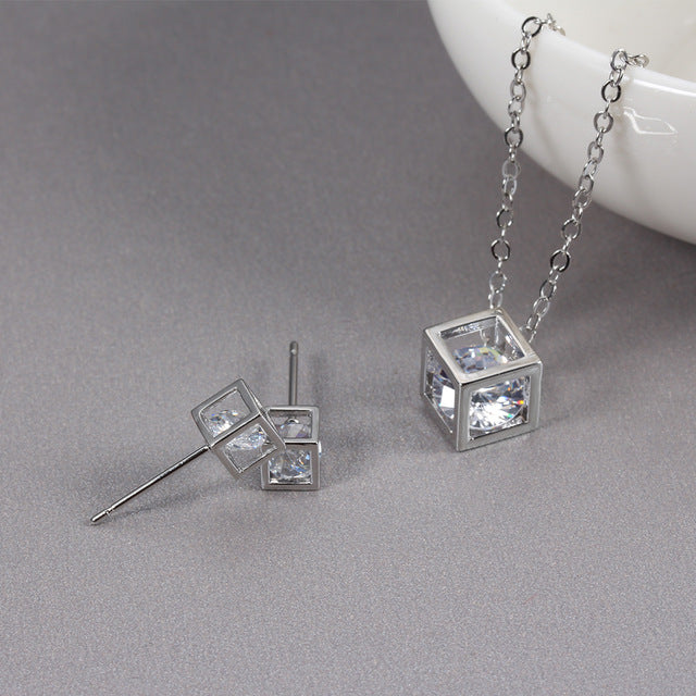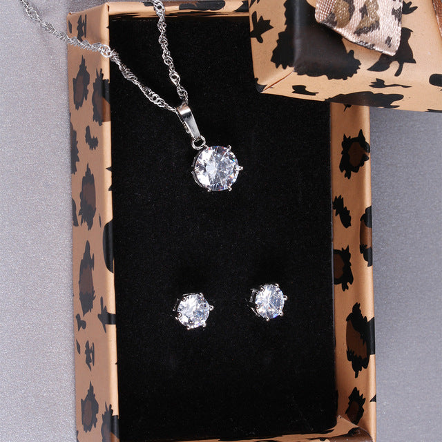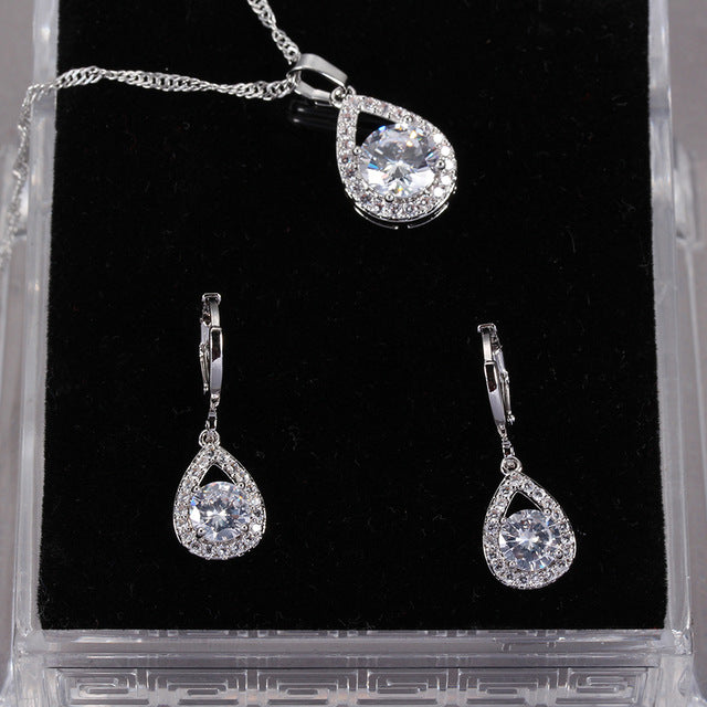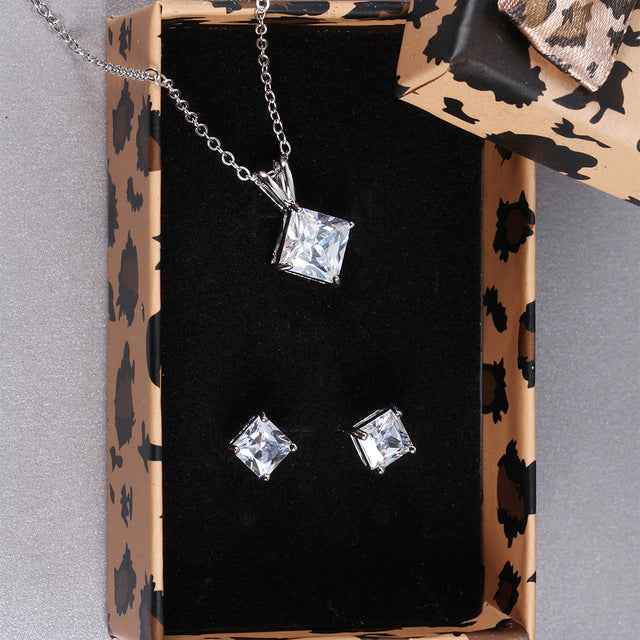 Bridal Jewelry Set Cubic Zircon Earrings And Chain Pendant Necklace Combination Set For Women Popular Jewelry Anniversary Gifts