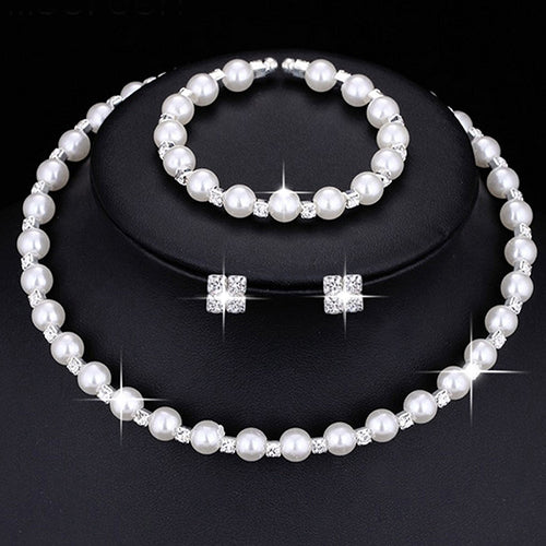 Fashion Wedding Bridal Jewelry Set Pearl Party Prom Silver Color Crystal Bracelet Necklace Earrings for Women jewellery sets