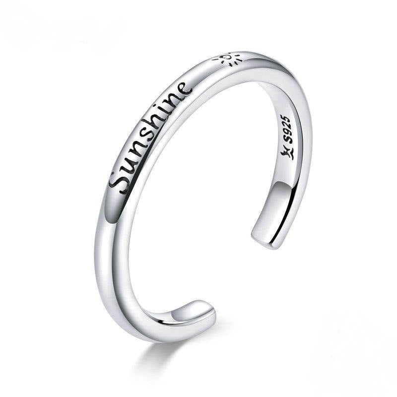 Silver Sunshine Engrave Adjustable Finger Rings for Women Stackable Korea Style Fine Jewelry Anel SCR649