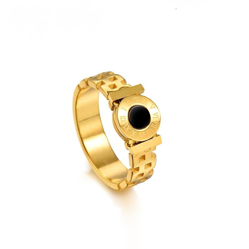 Roman Nummeral Ring Golden Stainless Steel Engagement Rings Black Acrylic Grid Stripe Finger Rings For Women Men