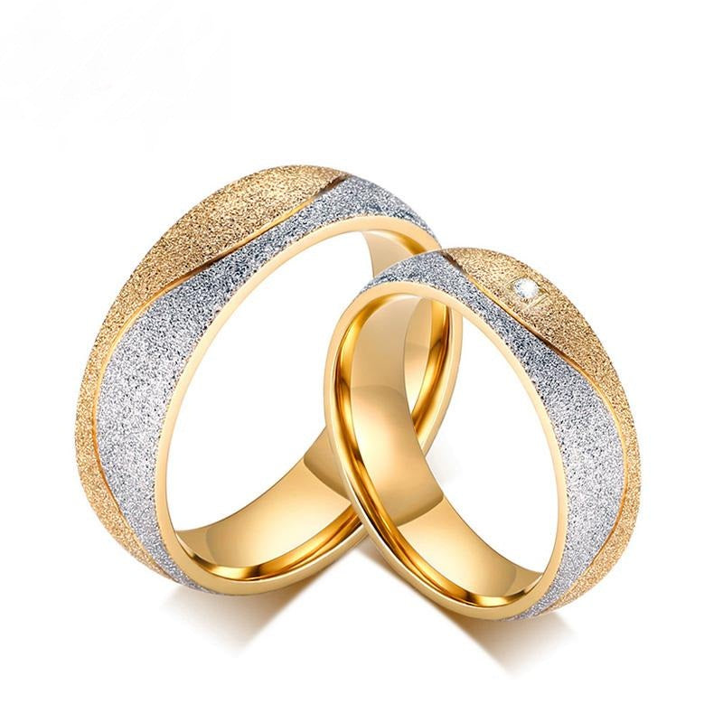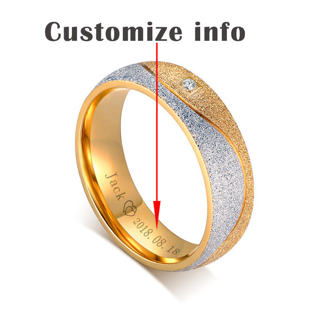 Couple engagement ring for women men sand blasted gold color stainless steel CZ wedding rings Personalized jewelry