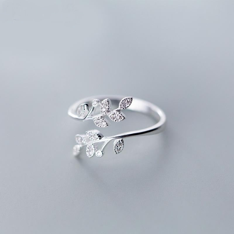 Personality 925 Sterling Silver Crystal Leaf Rings For Women Wedding Jewelry Adjustable Antique Finger Ring Anillos