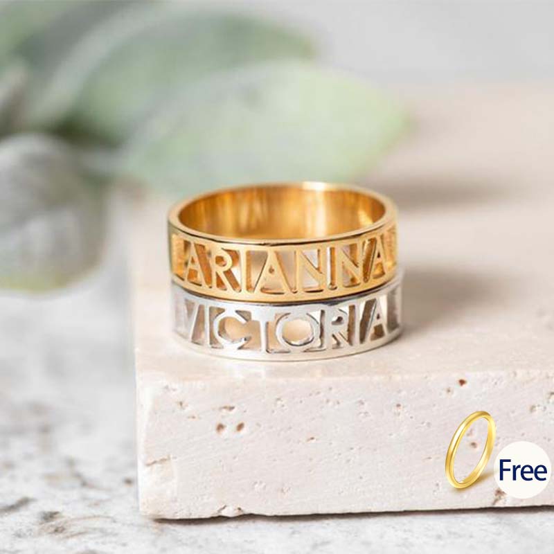 Letter Engraved Rings for Women Custom Ring Men Engagement Wedding Band Gold Hollow Stainless Steel Customized Gift Metal