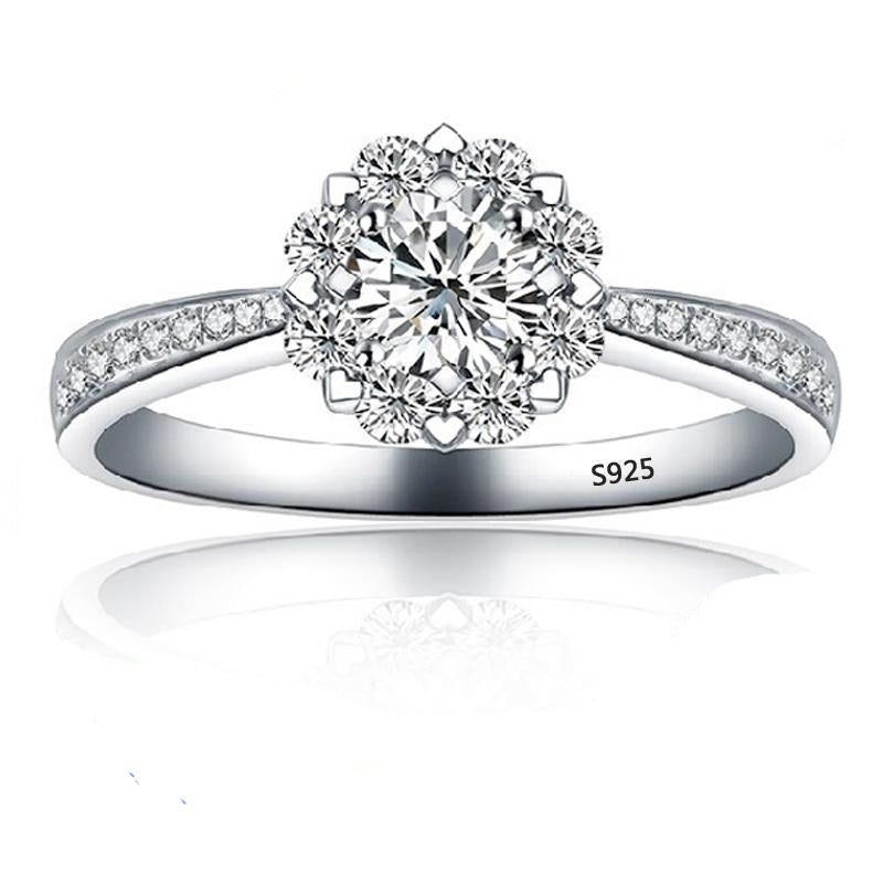 New Trendy Gorgeous CZ Flower 925 Silver Wedding Engagement Rings for Women High Quality Full Pave Zircon Vintage Jewelry