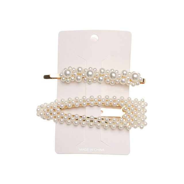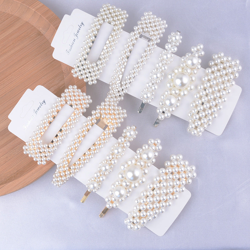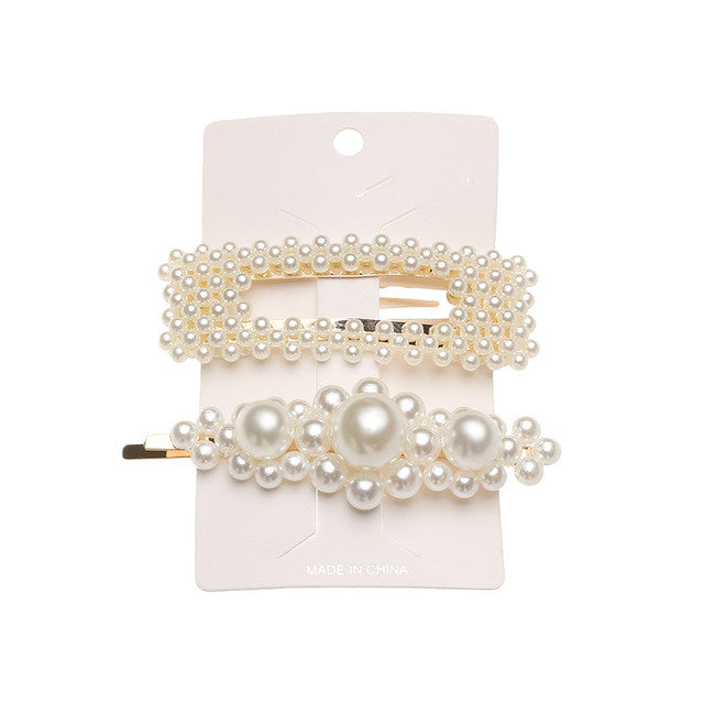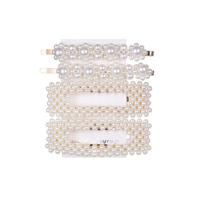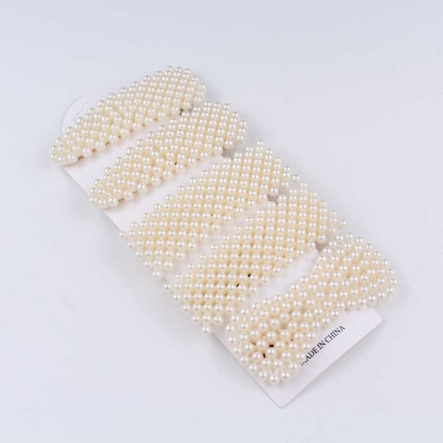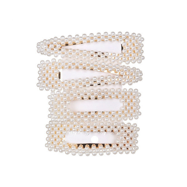5Pcs/Set Fashion Pearl Hair Clip Snap Button Hair Pins for Women Sweet Pearl Hairpin Hair Clips Jewelry Lady Barrette Stick
