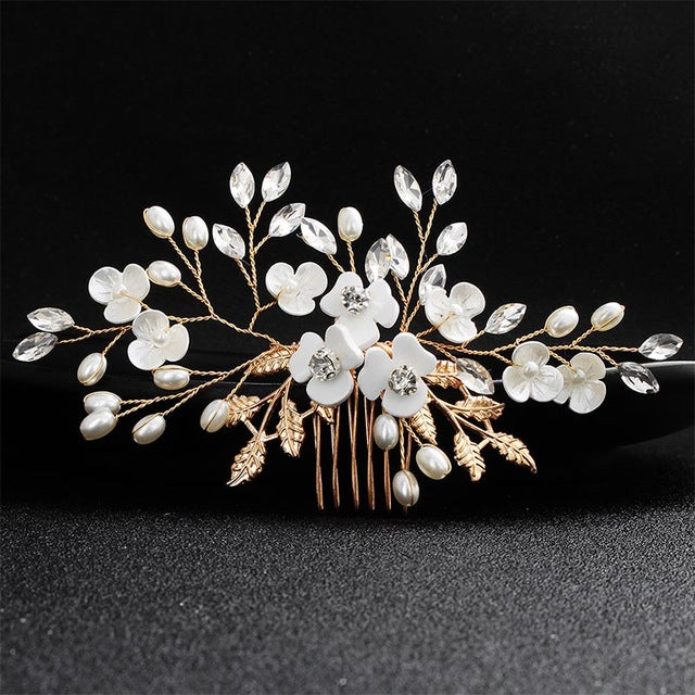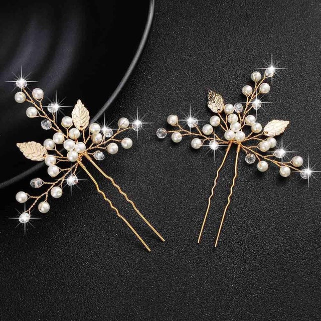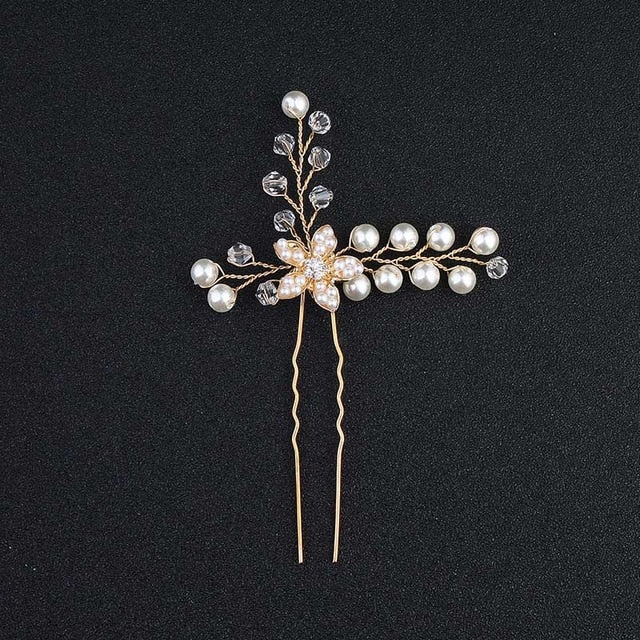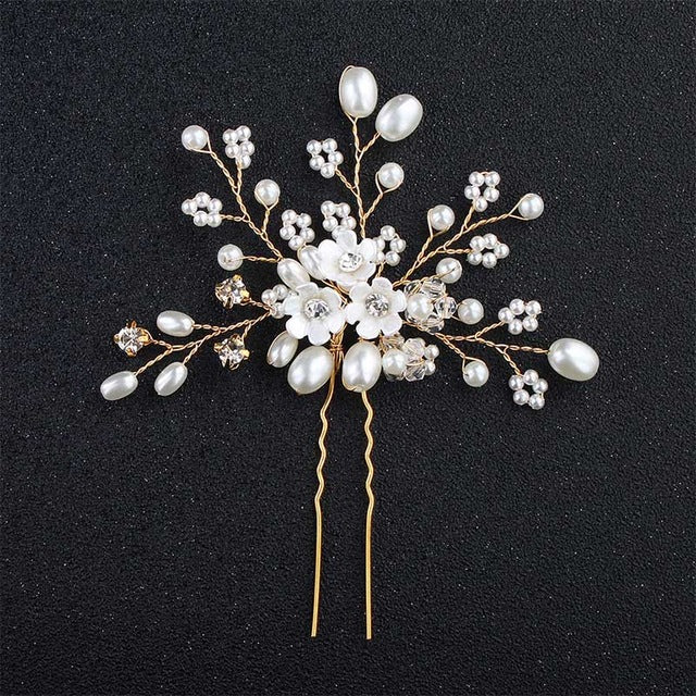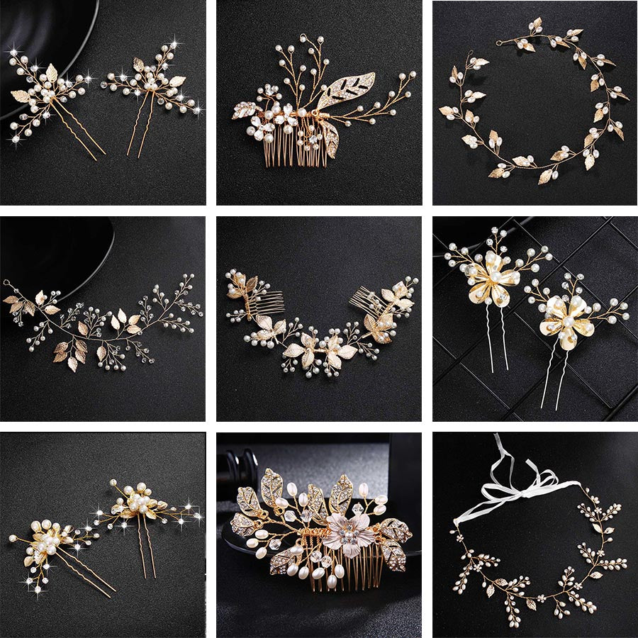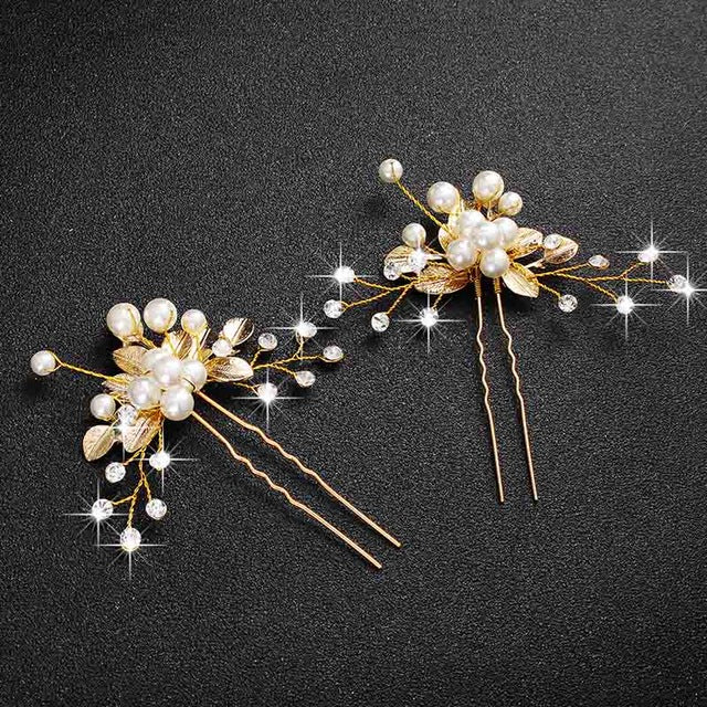 Fashion Pearls Gold Wedding Hair Accessories Flowers Bridal Hair Jewelry Hair Pins Pearl Clips for Women Headpieces