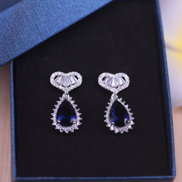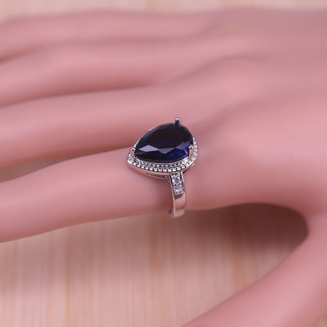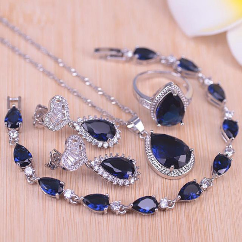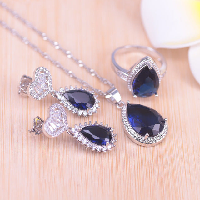 Big Water Drop Blue Stone Silver Color Jewelry For Women Bridal Jewelry Stud Earrings Ring Necklace Bracelet Set In Store