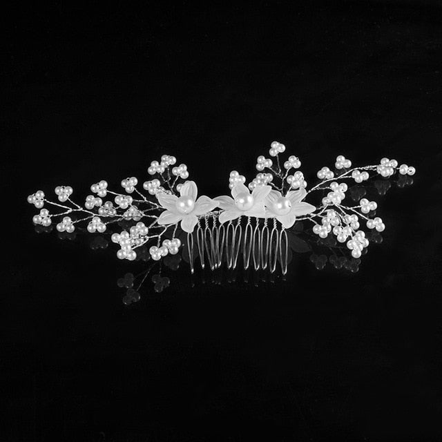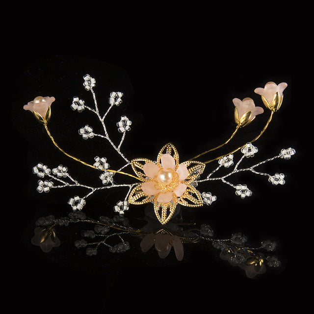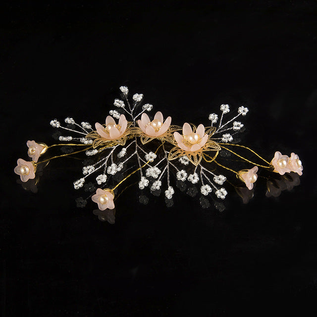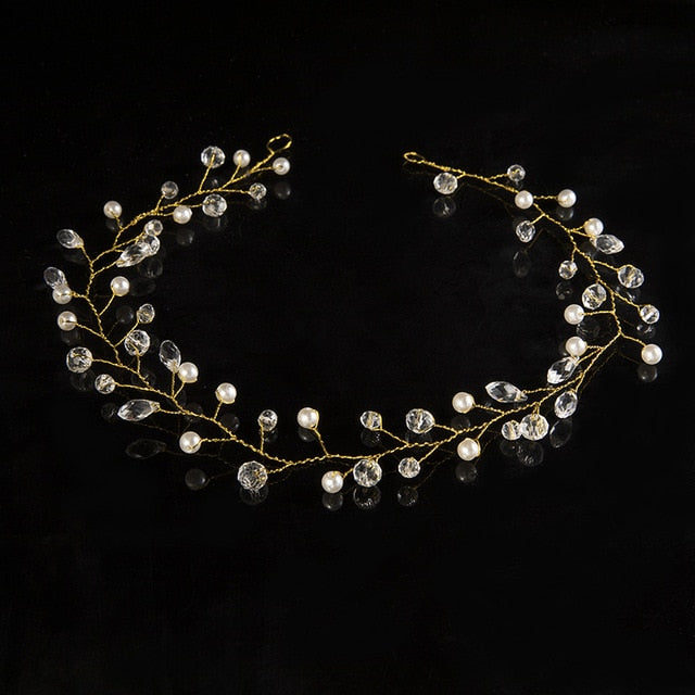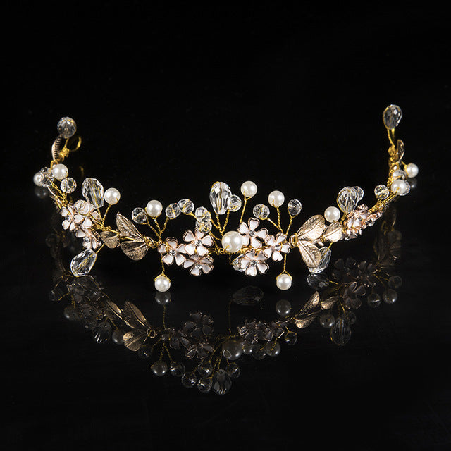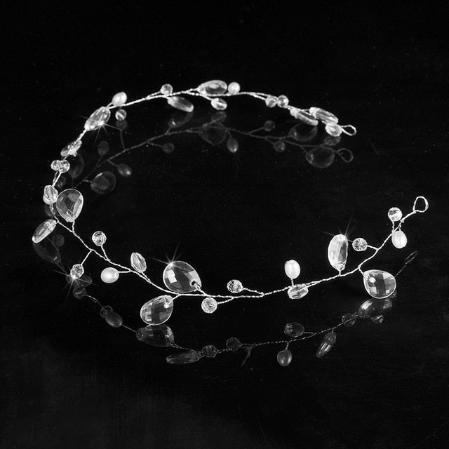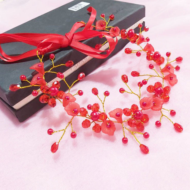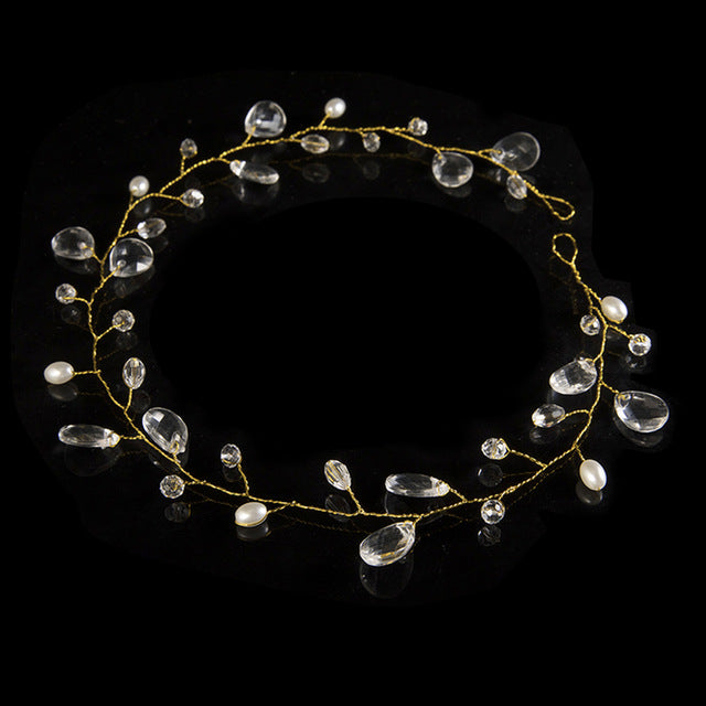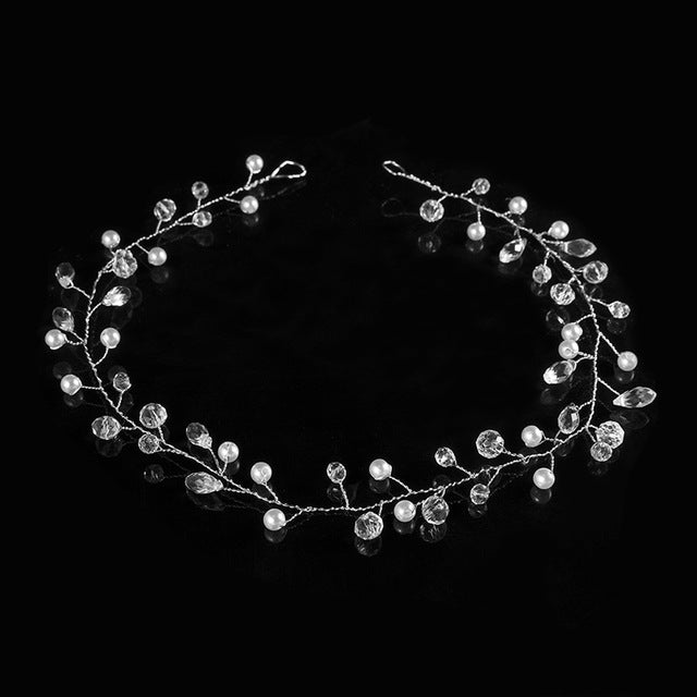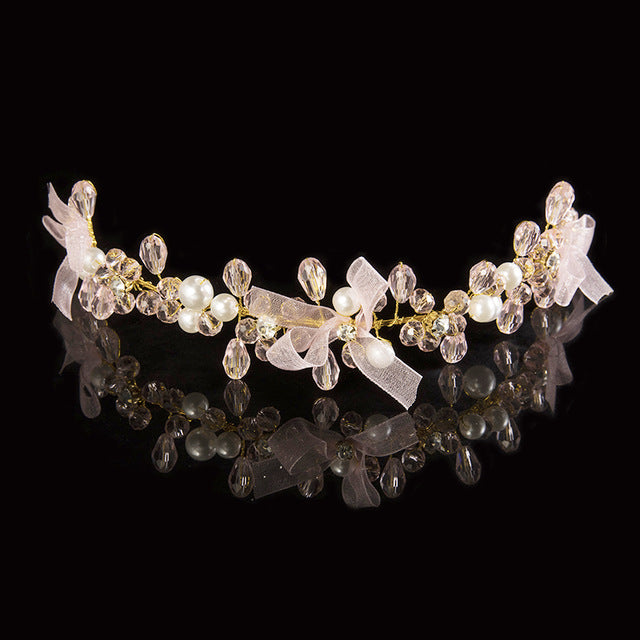 Elegant Bridal Wedding Hair Accessories Crystal Pearl Flower Girl Headband Ribbon Headpiece Hair Jewelry Accessories