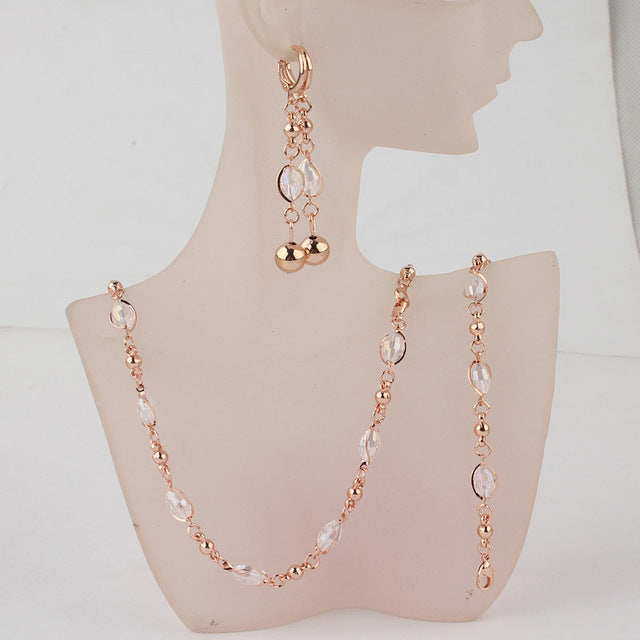 Fashion Crystal African Beads Jewelry Sets Gold Color Wedding Bridal Jewelry Sets Women Necklace Earrings Bracelets Jewellery