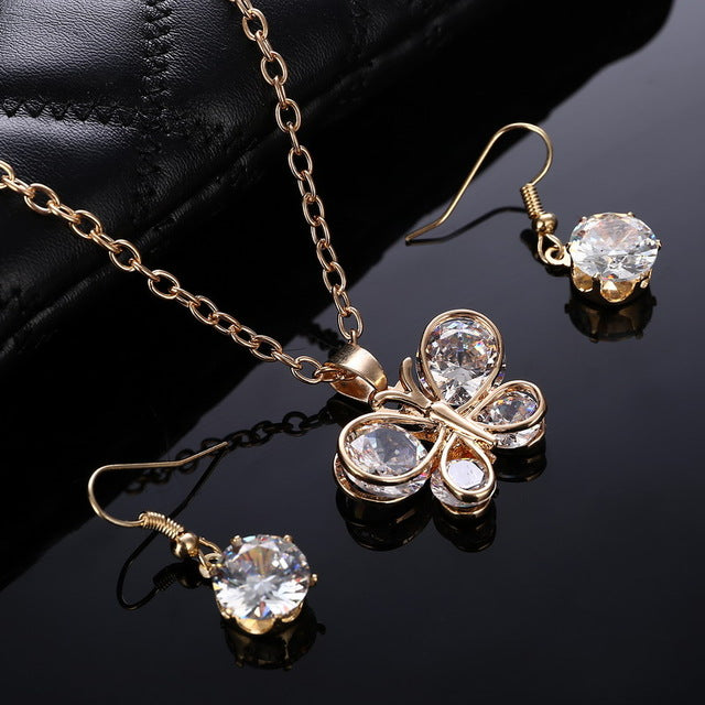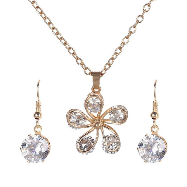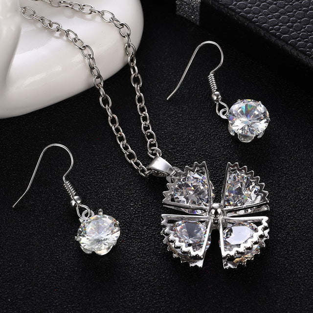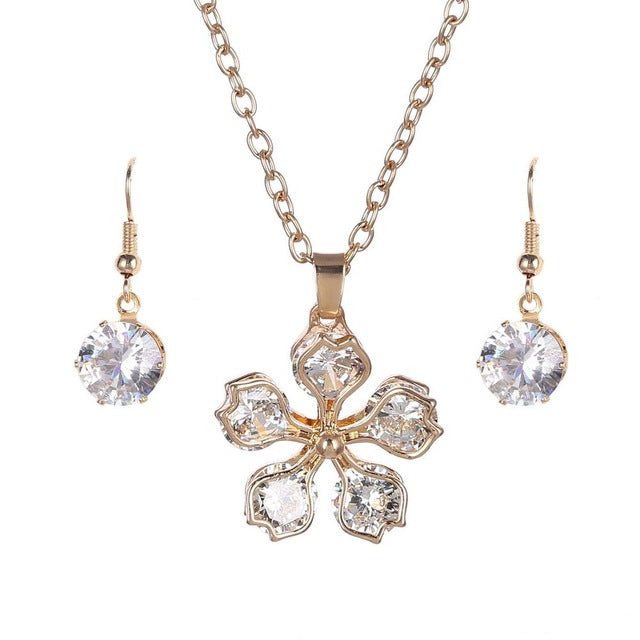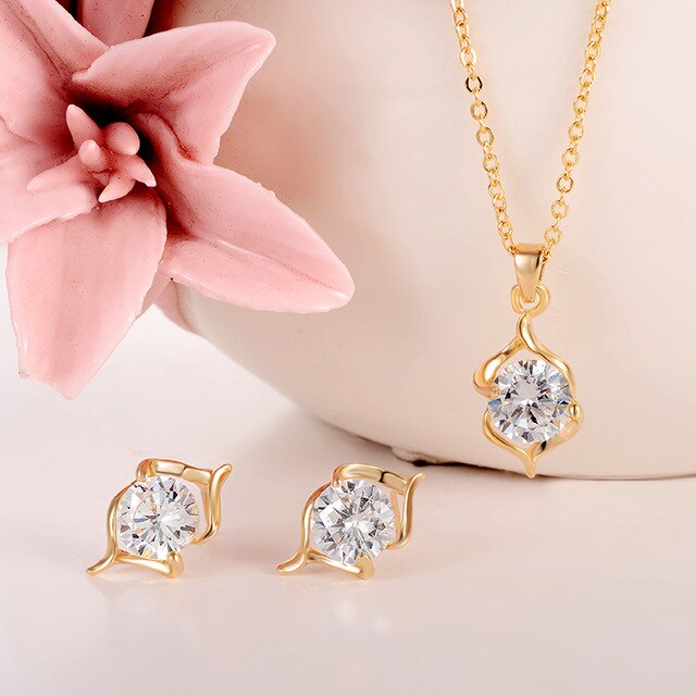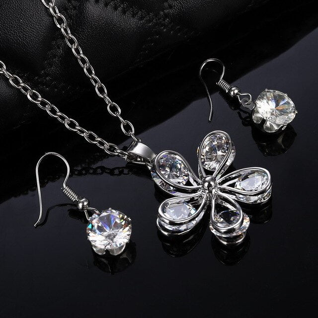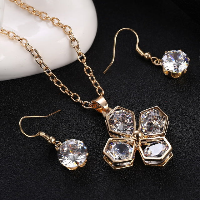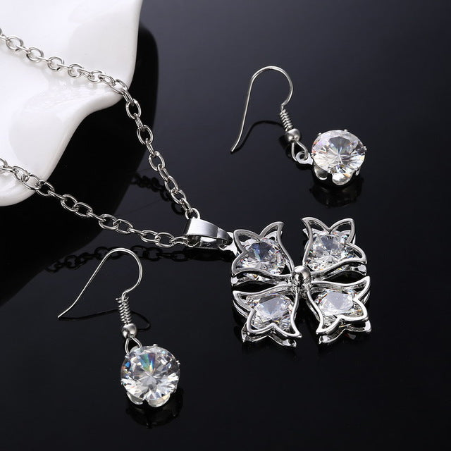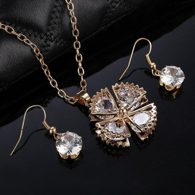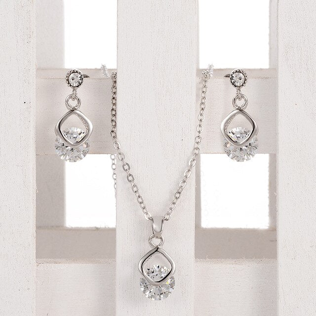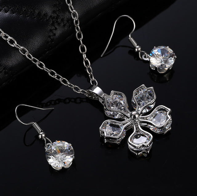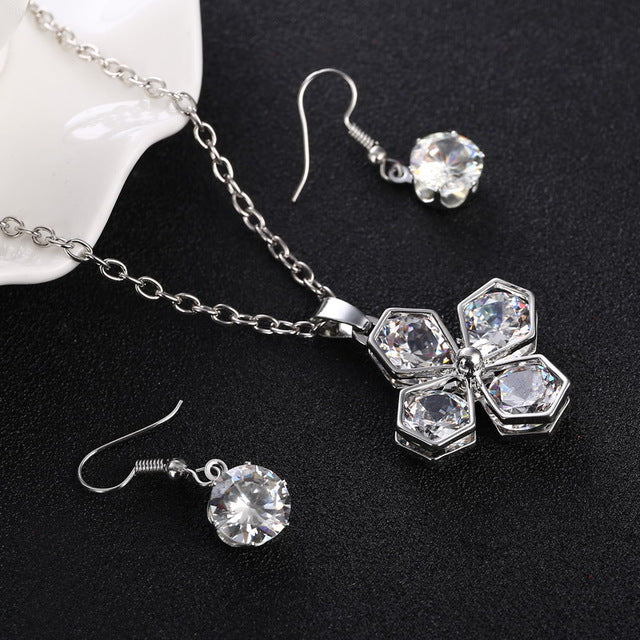 Fashion Gold Silve Color Pendants & Necklace Drop Earrings Natural Stone Cubic Zirconia Crystal Wedding Bridal Jewelry Sets