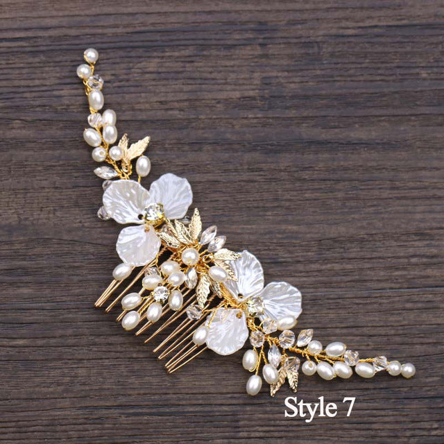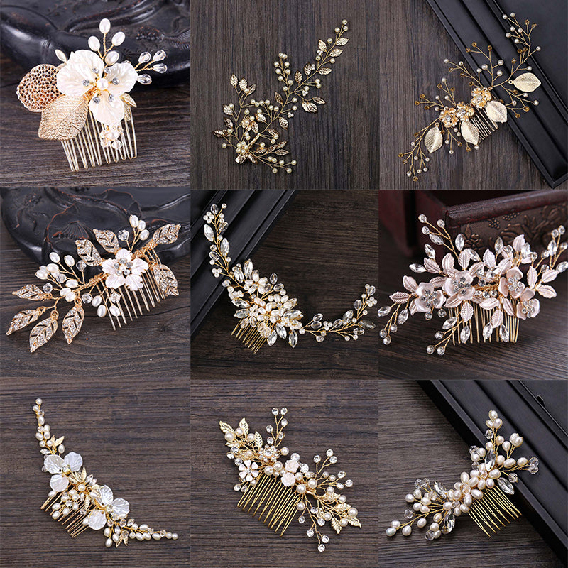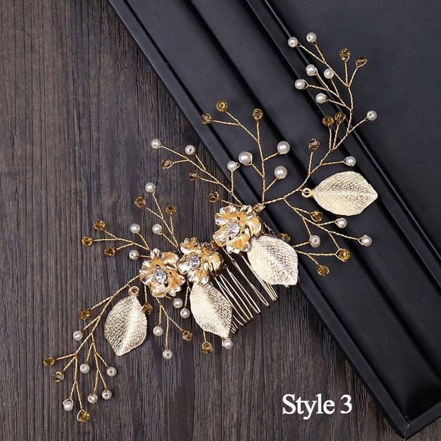 Golden Metal Crystal Pearl Hair Combs Jewellery Tiaras de Noiva Headpiece Bridal Hair Jewelry Women Wedding Hair Accessories VL