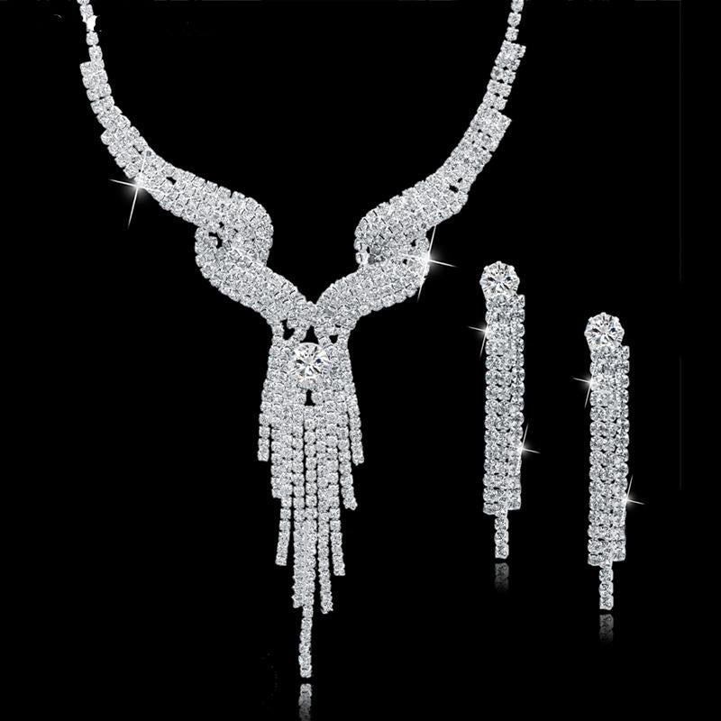 Wedding Jewellery Set Crystal Bridal Jewelry Sets For Women Long Tassel Statement Necklace/Earrings Set SET150011